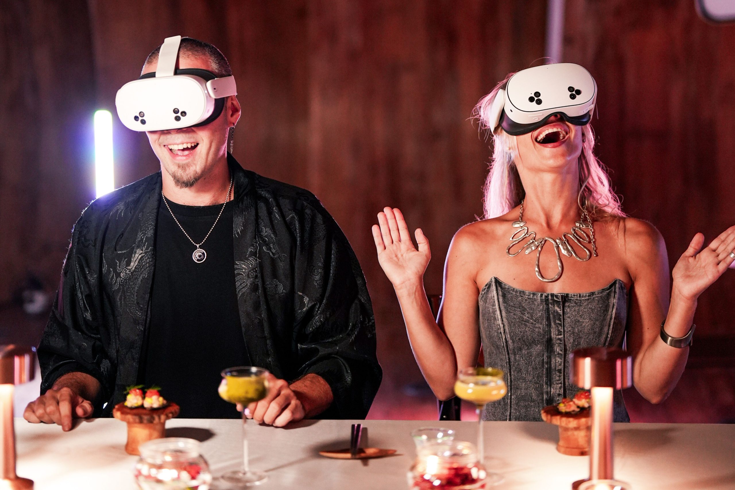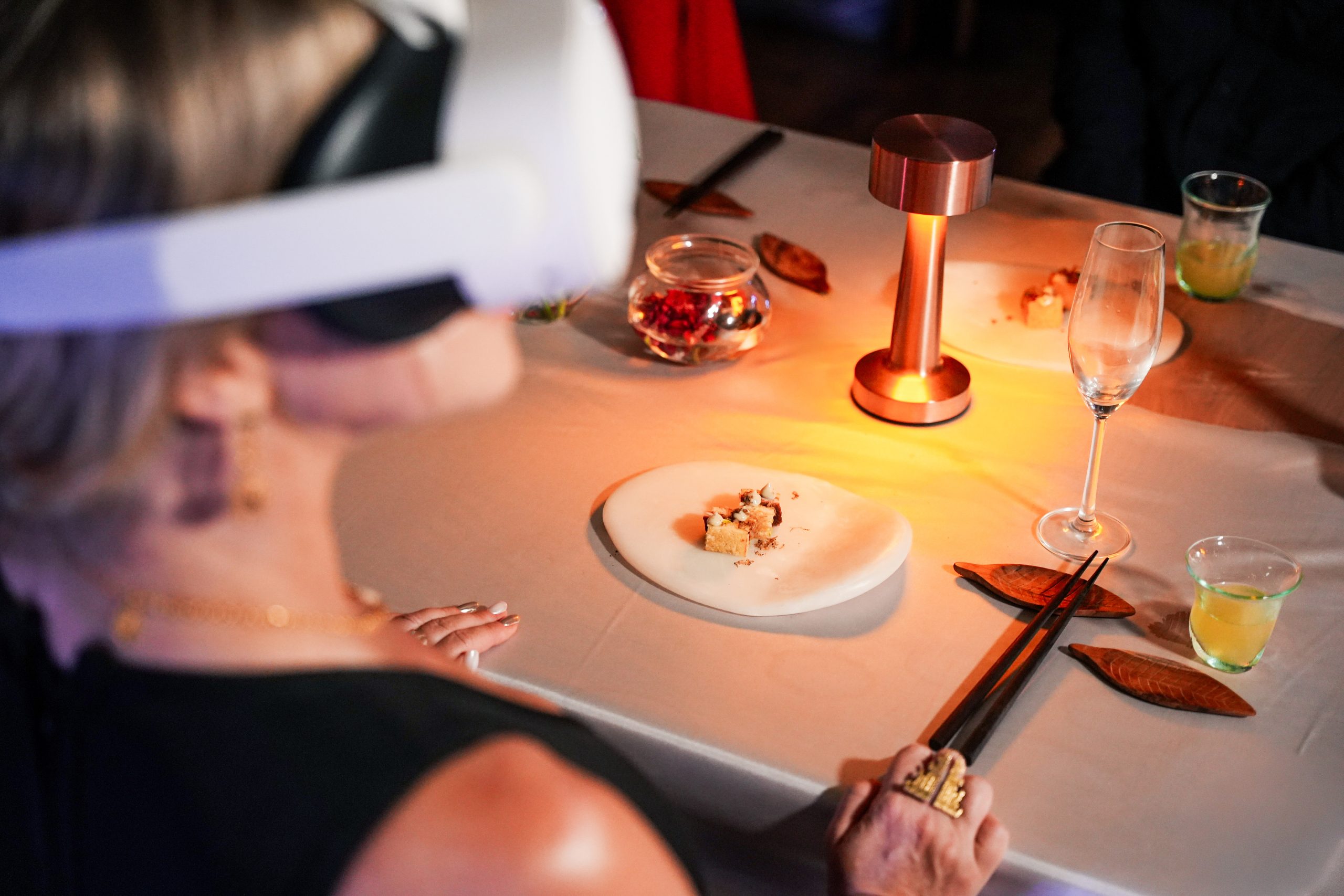 Each course aligns seamlessly with one of the eight virtual reality worlds guests explore during the dinner. This creates a narrative-driven culinary journey using virtual reality, where taste, sight, and storylines converge to deepen the sensory impact.
