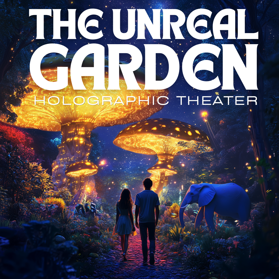 The Unreal Garden is a multi-act holographic augmented reality attraction that immerses guests in a series of surreal, dreamlike landscapes where imagination comes alive. Unlike traditional virtual reality, augmented reality overlays fantastical digital environments onto the real world, allowing players to interact naturally with the space, with each other, and with extraordinary life-sized creatures—all without the disconnection or motion sickness sometimes associated with VR.
