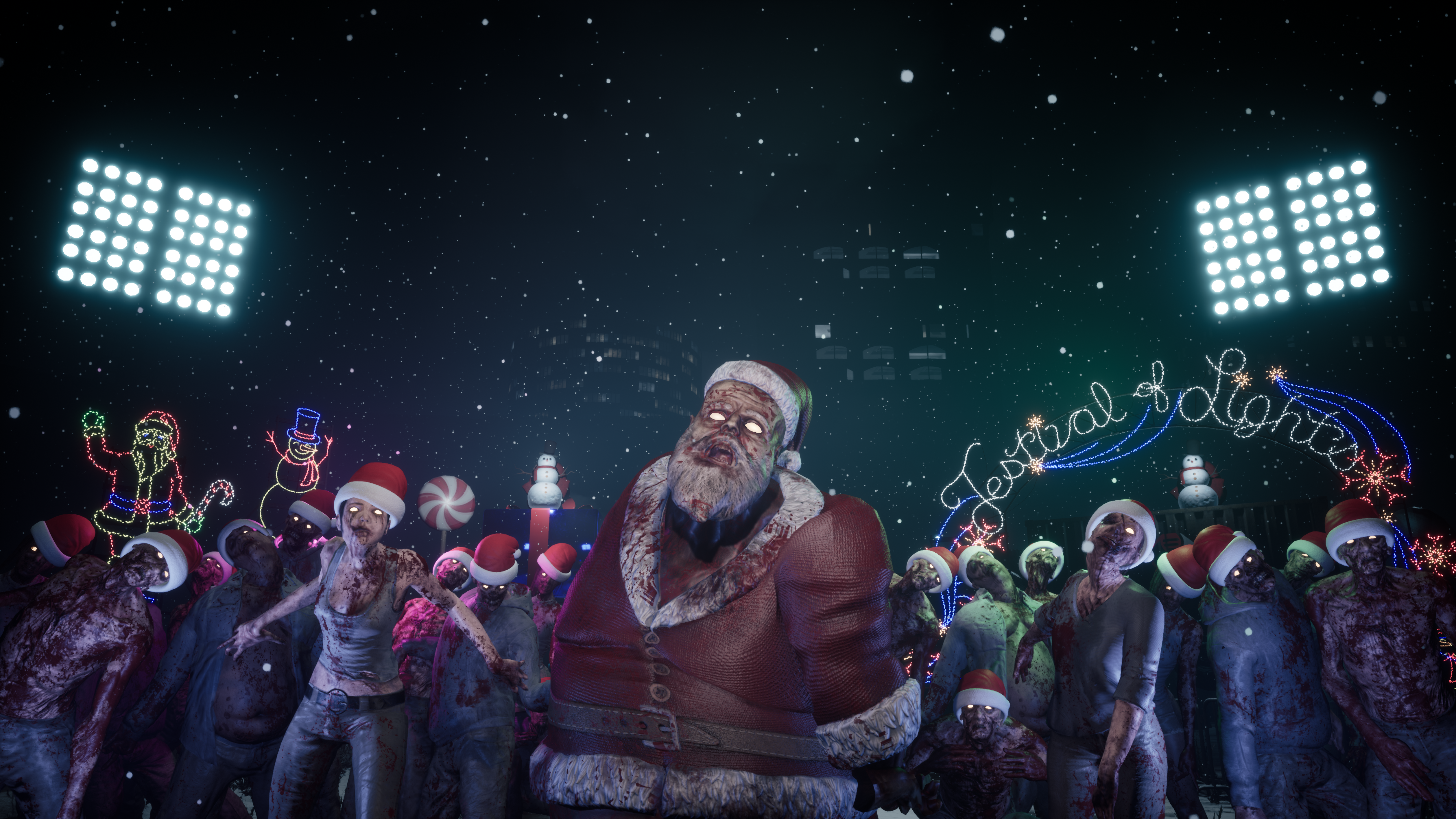 Santa-hat-wearing zombies shuffle and stumble through the holiday scene, bringing a touch of humor to the chaos. These jolly undead wear their red hats with white pom-poms, turning a typically frightening encounter into a funny hunt. Picture yourself dodging an attacking zombie dressed as Santa—it’s both festive and scary, making each encounter unforgettable.