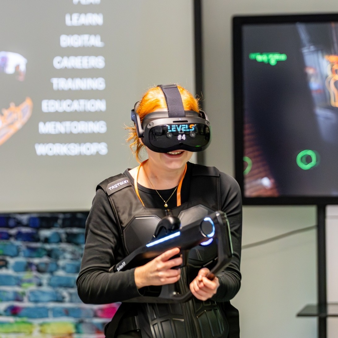 Levels features immersive training and classroom environments, the North’s largest VR arcade with racing, co-op, competitive gaming, virtual escape rooms, high-end PCs, Meta Quest 3 headsets, esports areas, an aviation simulator, a café space, creative media studios including podcasting suites and audio labs, and social gaming spaces.